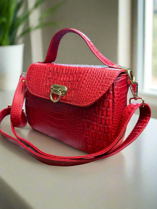 The Mable – Red Croc-Embossed Vegan Leather Purse