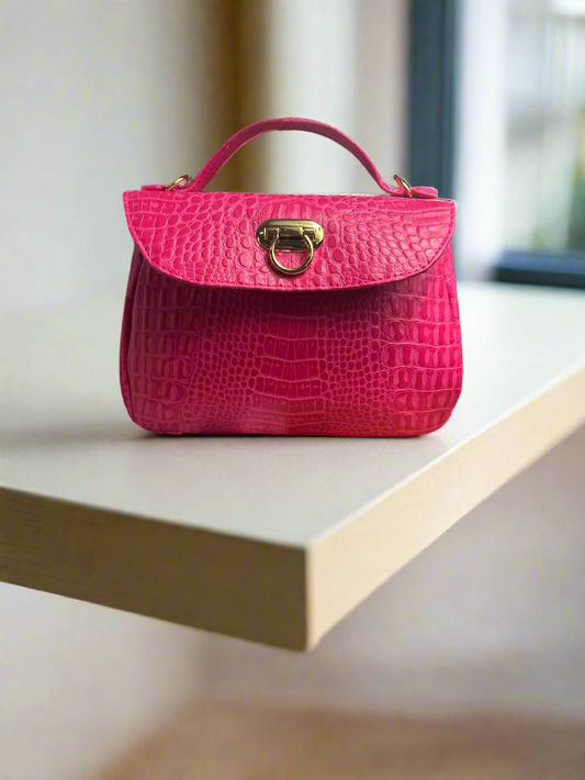 The Mable - Pretty In Pink Croc-Embossed Vegan Leather Purse