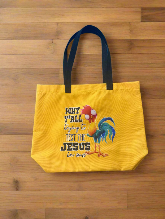 "Why Ya'll Trying to Test the Jesus in Me" Tote Bag