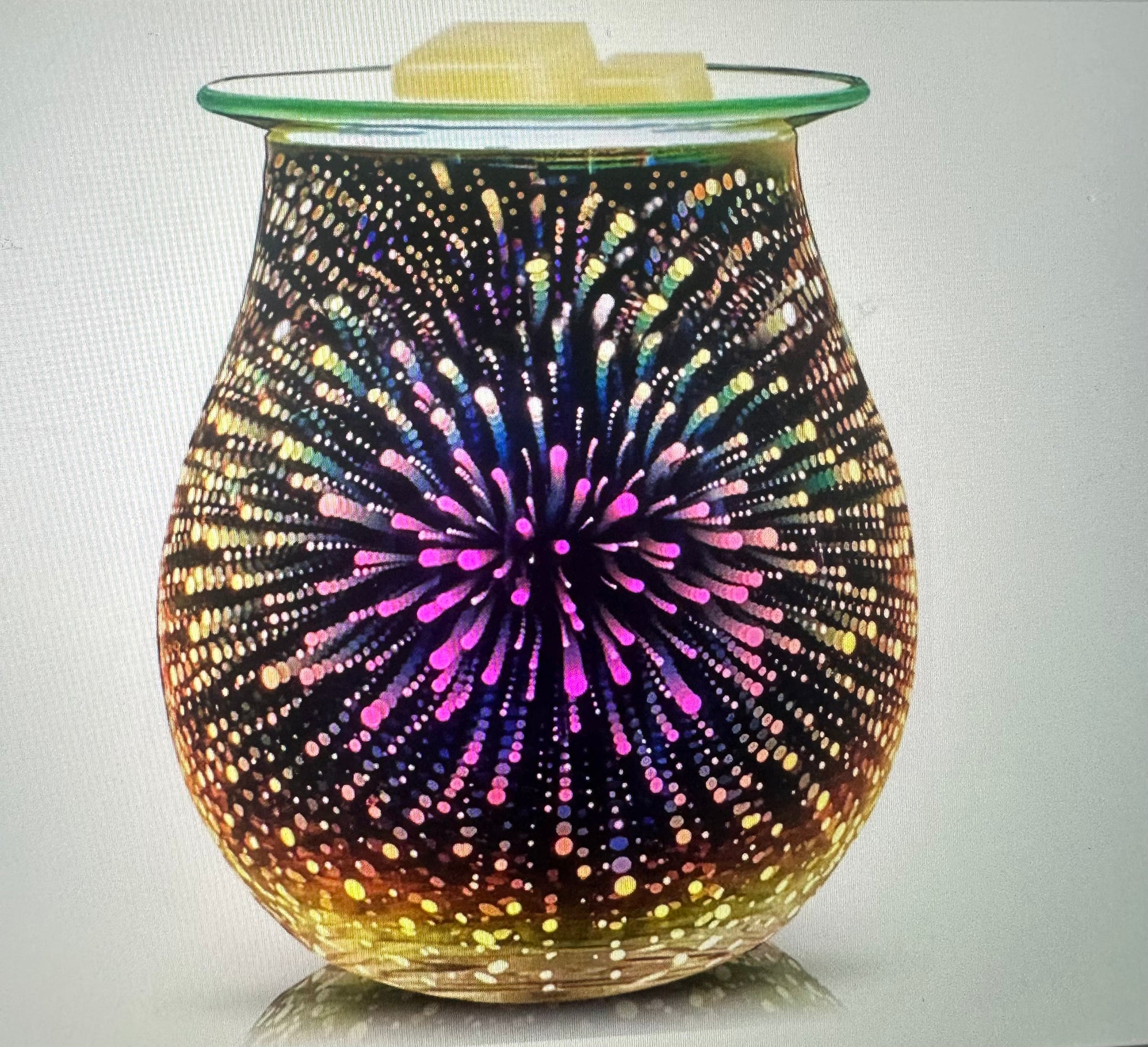Our glass electric wax melter/fragrance warmer is perfect for studio, office, bedroom, living room or home. When lit, the wax melt warmer produces a vivid 3D fireworks effect and makes if perfect for a night light or for a lovely night-time atmosphere.Why You'll Like It: