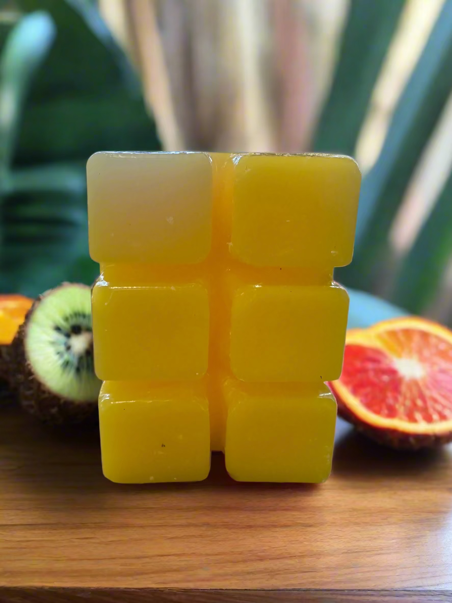 Just snap off a section or two of our candle melt and place under one of our gorgeous wax melters. No need to worry about an open flame with our flameless candle melts. Our Jamaica Me Crazy candle line brings a tropical island vibe to your candle collection for an instant island get away year-round. The much loved scent is an tropical citrusy explosion that transform into a delicately sweet fruity cocktail. This is by far our best selling candle fragrance.